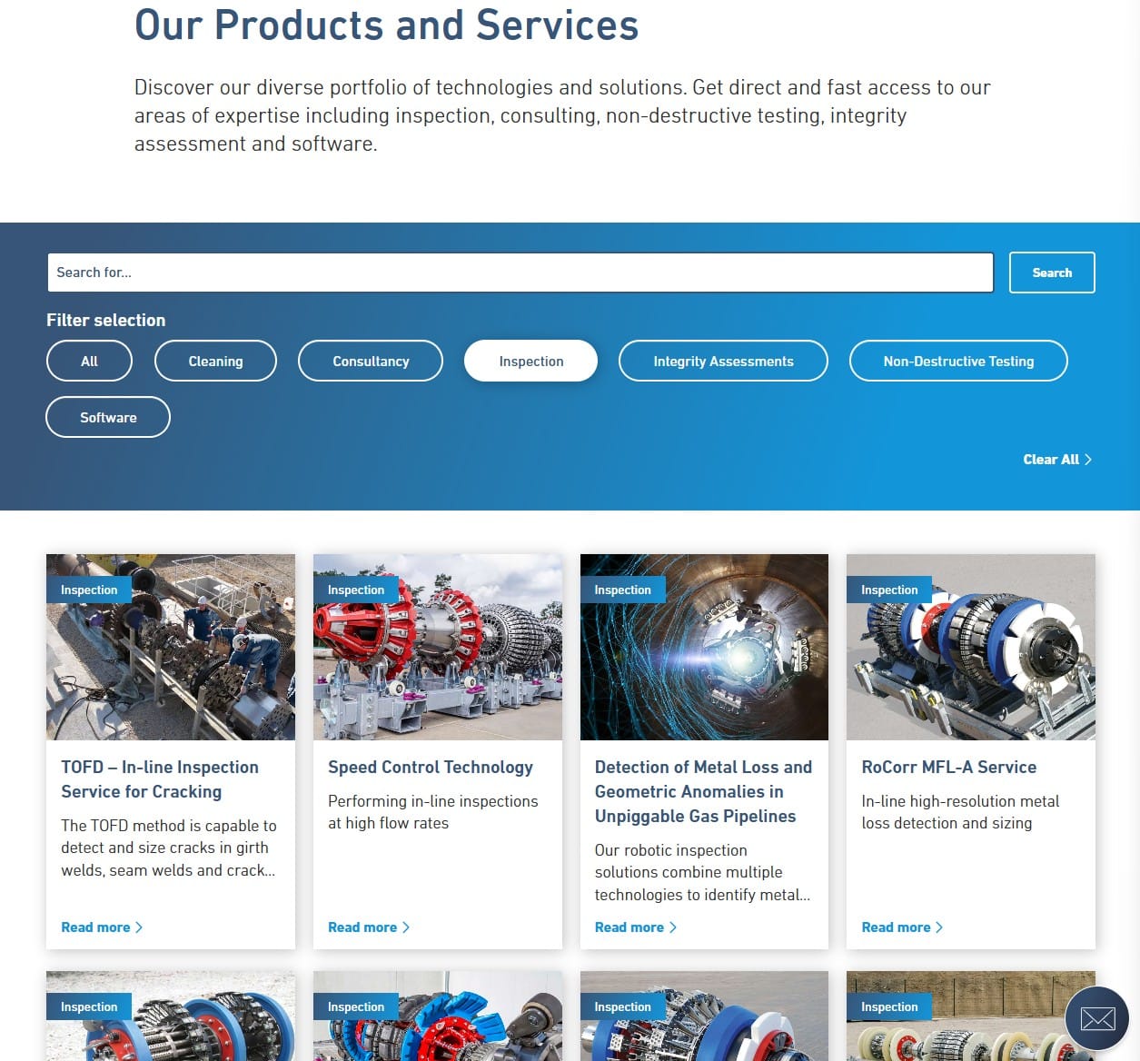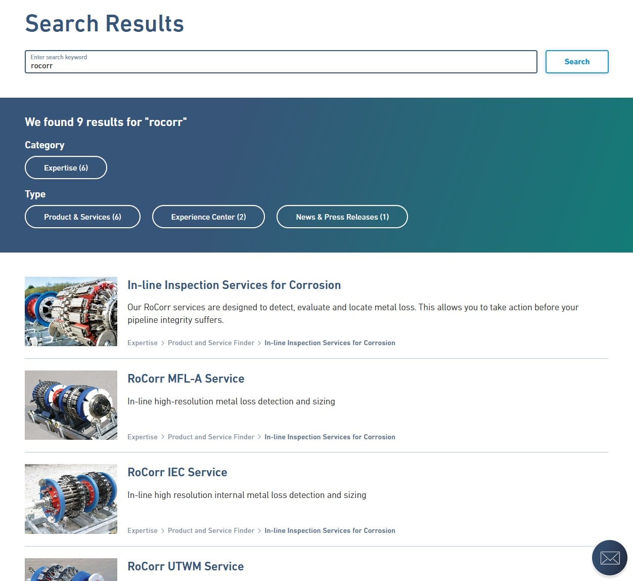 When we now search for rocorr on our website, the search results list the product family page first, followed by the individual products from that page. Each result links directly to the relevant tab within the page via a deep link.